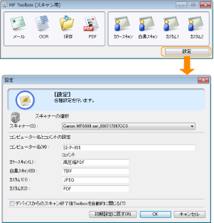 スキャンモードを選択します。選択できるスキャンモードは、クリックしたMF Toolboxのボタンによって異なります。