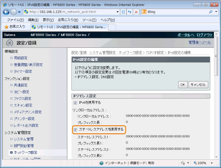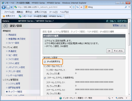 IPアドレスの設定を始める前に、「お読みください(IPアドレスの設定(IPv6))」をご覧ください。