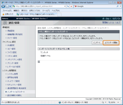 動作が完了するまで、画面は変わりません。砂時計やポインタが動作中を示している間は、[エクスポート開始]をクリックしないでください。