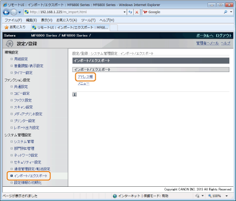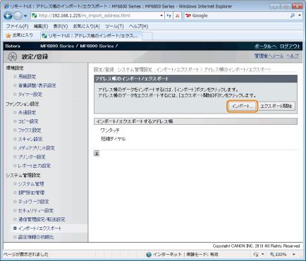 [インポート/エクスポート]をクリックして、[アドレス帳]を選択します。