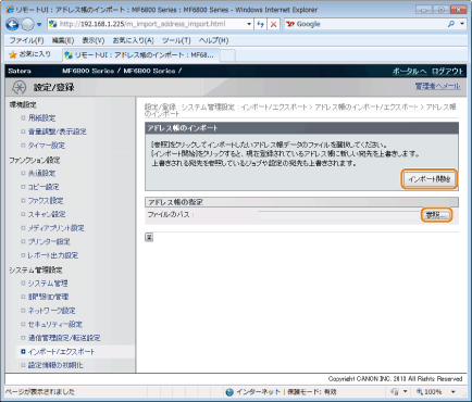 コンピューターに保存したファイルから、アドレス帳の情報を本製品に読み込むことができます。