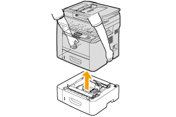ペーパーフィーダーを取り付けた状態で持ち運ばないでください。ペーパーフィーダーが落下して、けがの原因になることがあります。