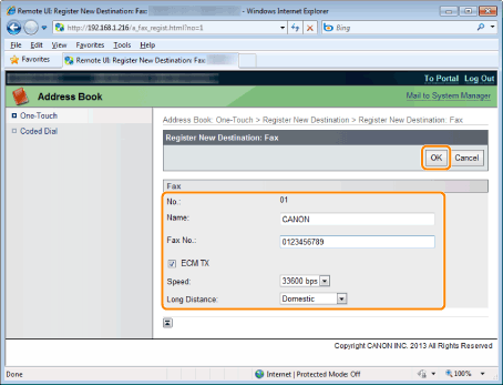 If you select <Fax> in Step 4, press [OK] to specify <Set Details> if necessary. ![]() |