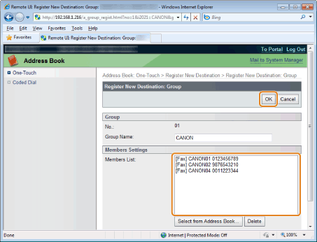 Make sure the destination you registered is displayed in [Members List] and click [OK].