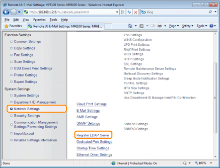 If an LDAP server is implemented in the network, you can register fax numbers and e-mail addresses to the server so that they can be searched for and specified as fax or e-mail destinations, or copied into the Address Book. You can register a maximum of five LDAP servers to the machine.