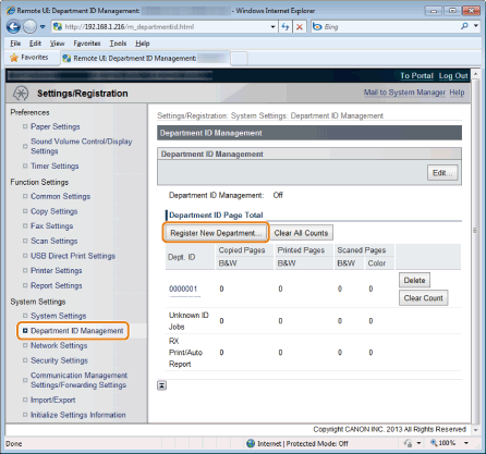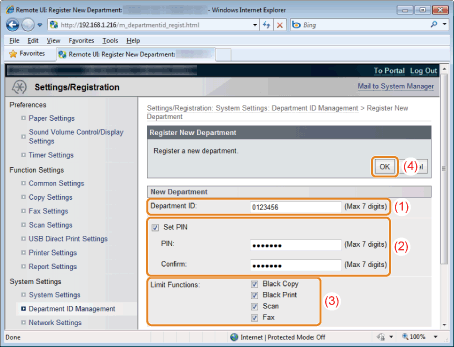 ![]() A department where the feature is not restricted can select <Yes> and then enter its department ID and PIN to use this product.