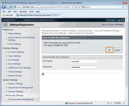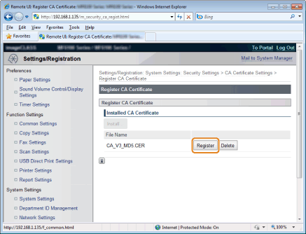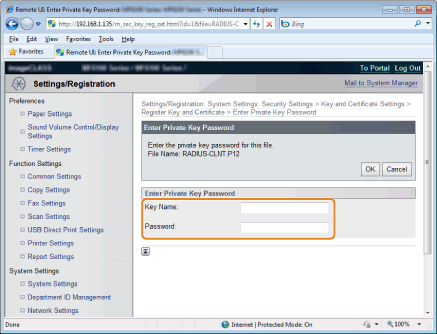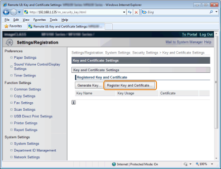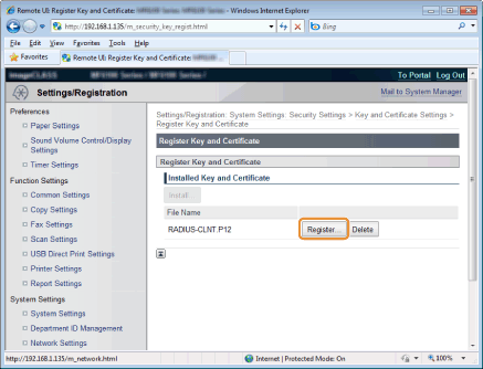 Register keys and certificates to be used for IEEE802.1X TLS authentication or SSL features as well as CA certificates.