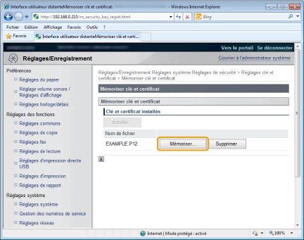 Enregistrez les clés et certificats à utiliser pour l'authentification TLS IEEE802.1X ou les fonctions SSL, ainsi que les certificats CA.