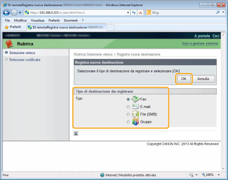Se si seleziona <Fax> nel passaggio 4, premere [OK] per specificare <Impostazione dettagli>, se necessario. ![]() |
