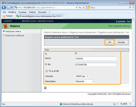 Selezionare <Registra nuova destinazione in rubrica> utilizzando [