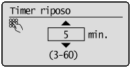 Per impostare il timer di riposo automaticoÈ possibile impostare un tempo di avvio del riposo automatico compreso tra <3> e <60> minuti, in intervalli di un minuto. Il valore predefinito per questa impostazione è <5> minuti.