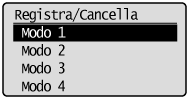 Selezionare una memoria di modalità da eliminare utilizzando [