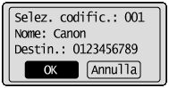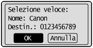 Se <Conferma TX selez. veloce/selez. codif.> è impostato su <On> e la destinazione viene specificata con i tasti di selezione veloce o con i codici di selezione codificata, la schermata viene visualizzata.
