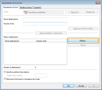 Il numero di destinazioni che è possibile inviare contemporaneamente dipende dalle condizioni in cui la copertina è stata allegata. Per informazioni dettagliate, consultare la guida in linea. (Vedere "Visualizzazione della guida in linea (invio di fax da PC)").