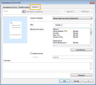 Per i dettagli su come allegare una copertina, consultare la guida in linea (vedere "Visualizzazione della guida in linea (invio di fax da PC)").