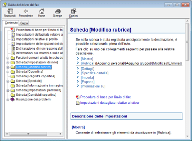 La guida in linea contiene informazioni aggiuntive su ciascuna opzione di fax. Se nell'e-Manual non ci sono le informazioni desiderate, consultare la guida in linea.