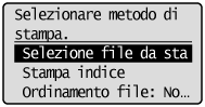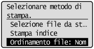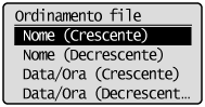 Selezionare <Ordinamento file> utilizzando [  ] e [  ], premere [OK].