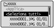 Per annullare la selezione da tutti i file, scegliere <Deseleziona tutti> utilizzando [  ] e [  ], quindi premere [OK].