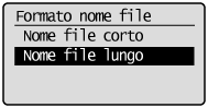 Il nome del file viene visualizzato nel formato ristretto a 8 lettere.