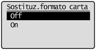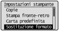 La procedura descrive i passaggi da seguire per cambiare l'impostazione <Sostituzione formato carta>.