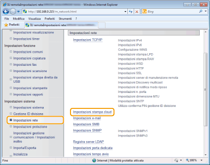 Fare clic su [Impostazioni rete] e selezionare [Impostazioni stampa cloud].