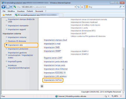 Fare clic su [Impostazioni rete] -> [Impostazioni AirPrint].
