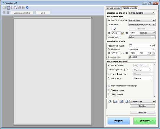 L'anteprima di scansione viene attivata automaticamente all'apertura di ScanGear MF. [Visualizza anteprima immagine salvata]