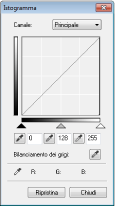 Regola la gamma. È possibile specificare il valore di gamma (compreso tra 0,10 e 10,00) del monitor per la visualizzazione dell'immagine acquisita. Questa impostazione non è riflessa nel risultato di scansione quando è selezionato [Bianco e Nero] in [Modalità colore].
