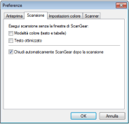 Selezionando questa voce, la finestra [ScanGear MF] viene chiusa automaticamente dopo la scansione. In base all'applicazione, ScanGear MF si chiude automaticamente dopo la scansione, indipendentemente da questa impostazione.