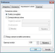 Regola i colori su quelli dello scanner, del monitor e della stampante a colori. Se questa voce è selezionata, i pulsanti delle impostazioni dei colori nella scheda [Modalità avanzata] vengono disabilitati. Questa impostazione è disponibile quando è selezionato [Colore] o in [Modalità colore]. |