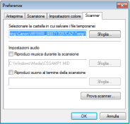 Viene riprodotta musica durante la scansione. Fare clic su [Sfoglia] e selezionare un file audio. [Riproduci suono al termine della scansione]