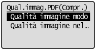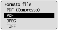 Selezionando <PDF (Compresso)>, le immagini a colori, quali le foto o le illustrazioni, vengono compresse maggiormente rispetto a <PDF> per ridurre la dimensione del file.