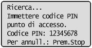 Per le istruzioni su come immettere il codice PIN, consultare il manuale delle istruzioni fornito a corredo del router o dell'Access Point LAN wireless utilizzato.