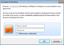 Quando viene visualizzata la schermata di autenticazione, immettere un nome utente e una password.