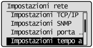 Quando il collegamento avviene tramite un hub con funzioni di switch, in alcuni casi la macchina potrebbe non connettersi alla rete, anche se le impostazioni di rete sono configurate correttamente. In questo caso è possibile che non sia consentita la connessione istantanea tra macchina e hub con funzioni di switch. Se si verifica questa situazione, impostare un tempo di avvio più lungo.