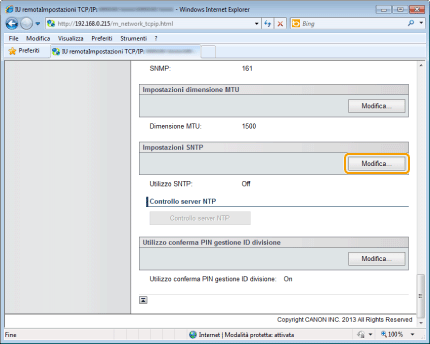 Fare clic su [Modifica] in [Impostazioni SNTP].