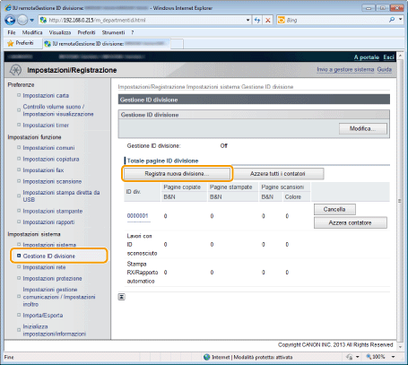 Immettere un numero composto da un massimo di 7 cifre in [ID divisione].