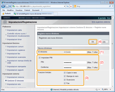 ![]() Una divisione per la quale la funzionalità non è stata ristretta può selezionare <Sì> e immettere il proprio ID e il proprio PIN per poterla utilizzare.