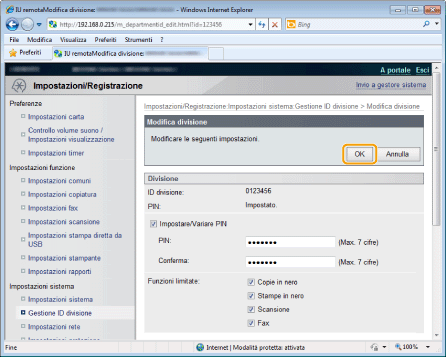 Selezionare la casella di controllo [Impostare/Variare PIN].