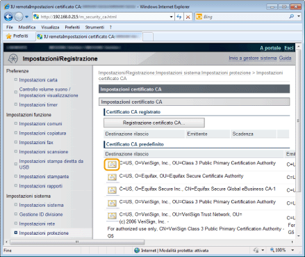[Impostazioni protezione] -> Fare clic su [Impostazioni chiave e certificato] o [Impostazioni certificato CA].