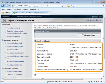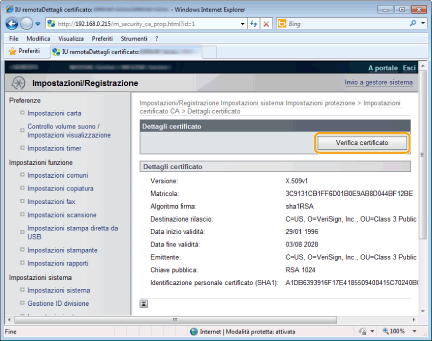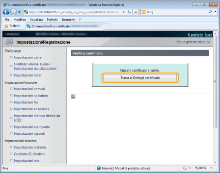 Dopo aver verificato i risultati della verifica, fare clic su [Torna a Dettagli certificato].