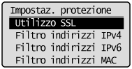 Selezionare <Impostazioni protezione> utilizzando [
