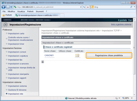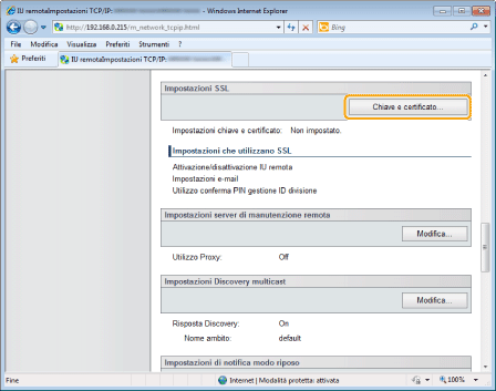 Fare clic su [Chiave e certificato] in [Impostazioni SSL].