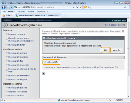 Selezionare la casella di controllo [Utilizzo SSL] e scegliere [OK].