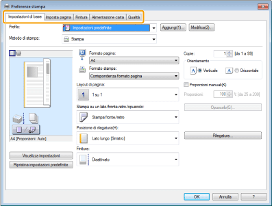 Schermata del driver della stampantePer i dettagli sulla visualizzazione del driver della stampante, vedere le sezioni seguenti.
