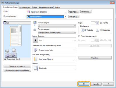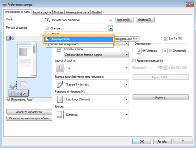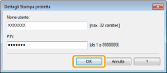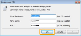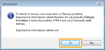 Quando il lavoro del documento di stampa protetta è salvato sul dispositivoSe il documento di stampa protetta è salvato sul dispositivo, è possibile che altri lavori di stampa non vengano stampati. In questo caso, stampare il lavoro di stampa protetta. Se ancora non è possibile stampare il lavoro, effettuare la stampa operando dal computer.