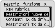 Selezionare <Restrizioni funzione TX> utilizzando [