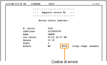 Non è stato possibile inviare un fax a causa dell'apparecchio del ricevente che non ha risposto perché la linea era occupata o per altre ragioni.
