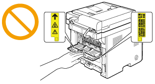 Al extraer el papel atascado o inspeccionar el interior de la máquina, no se exponga al calor emitido por la unidad de fijación y el área circundante durante un período de tiempo prolongado. Esto podría tener como resultado quemaduras por baja temperatura, aunque no haya tocado la unidad de fijación y el área circundante directamente.