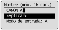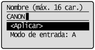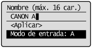 Utilice las teclas numéricas para especificar el <Nombre>.